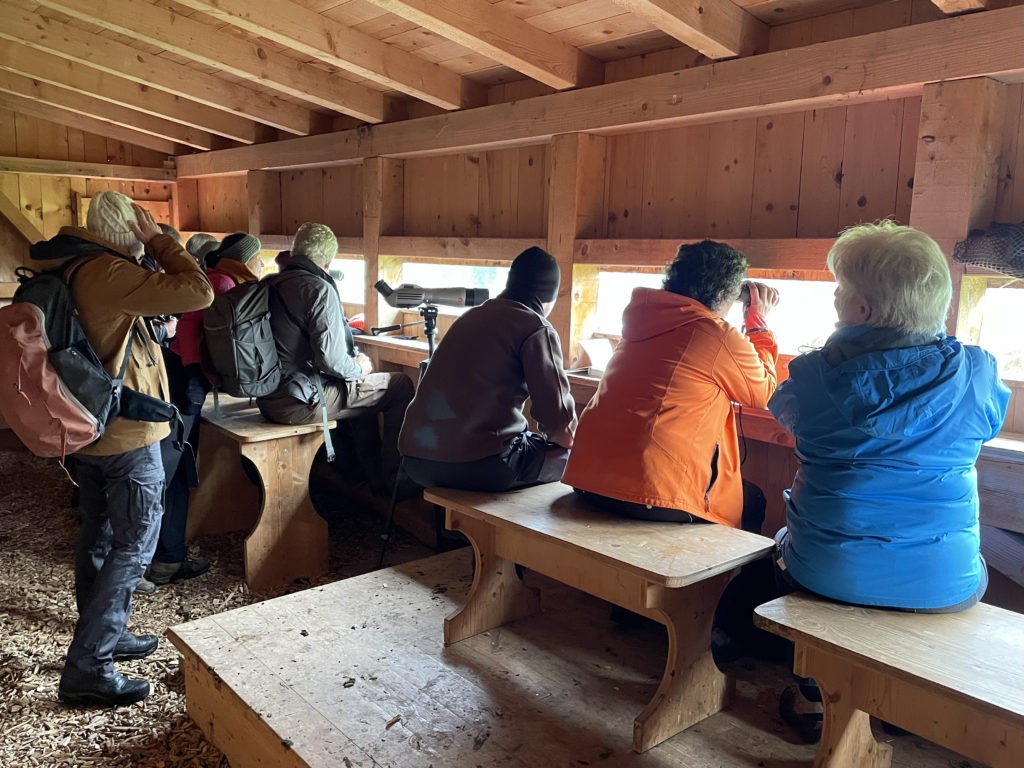 L’étang des Coeudres près du village de Damphreux (1). Géré par la Fondation des Marais de Damphreux, ce site accueille de nombreuses espèces d’oiseaux aquatiques, tels les canards ou les limicoles, que l’on peut découvrir à partir de deux cabanes d’observation. Un tunnel de verdure, constitué d’arbres et d’arbustes indigènes, permet d’y accéder sans déranger les oiseaux. Mais avant, une tour de 9 m de haut, inaugurée récemment (2023), nous offre une magnifique vue d’ensemble sur ce site marécageux. Pourtant, ce matin-là, on distinguait à peine le plan d’eau partiellement noyé dans le brouillard et seule la silhouette d’une Grande Aigrette s’y détachait. Plus tard, alors que les brumes s’estompaient peu à peu, d’autres espèces ont pu être déterminées, notamment à partir de la première cabane d’observation. Cormorans, ouettes d’Égypte, hérons cendrés et grèbe castagneux assuraient notamment le spectacle (cf. liste ci-contre).
